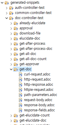 Test 를 해 보면 doc-controller-test / get-doc 밑에 .adoc 파일들이 생성된다.