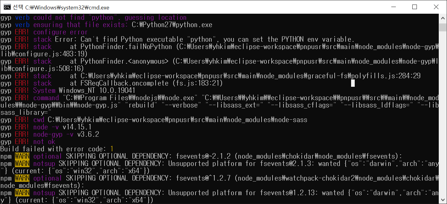 에러가 발생하며 npm install 을 실패한다.